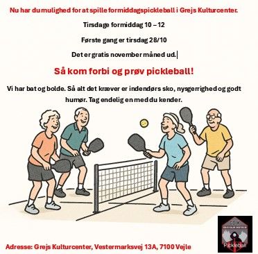 Nu har du mulighed for at spille formiddagspickleball i Grejs Kulturcenter.
